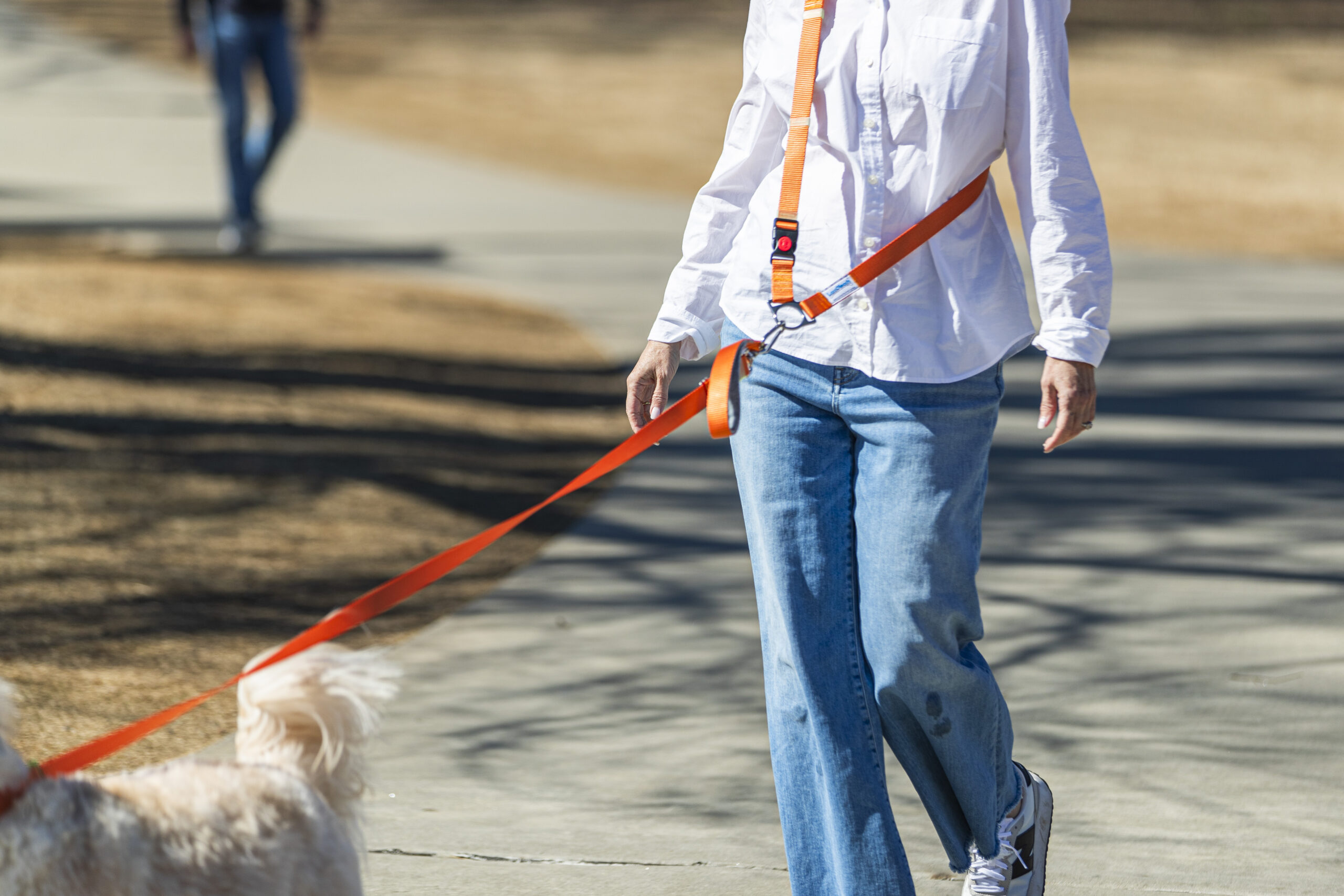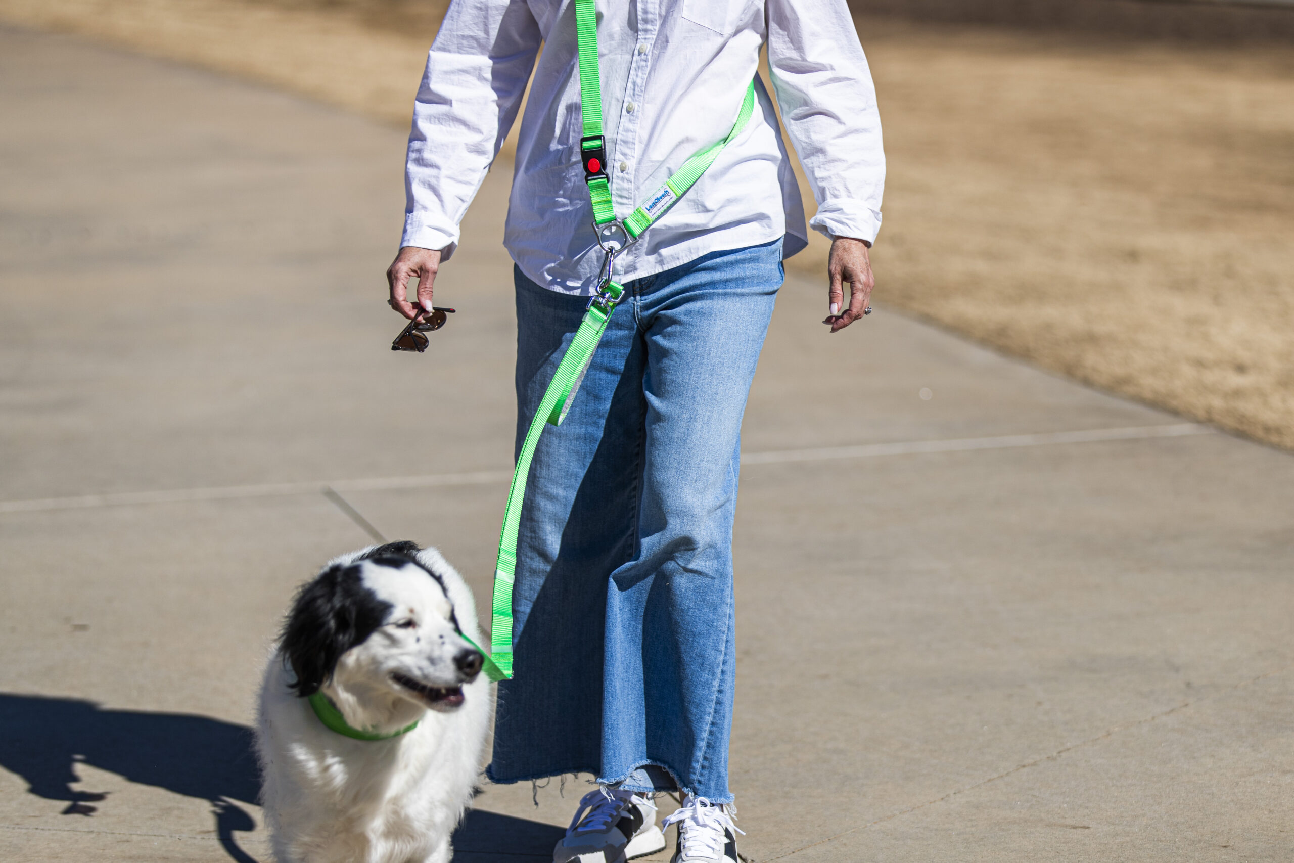 A nylon webbing Hands Free accessory that can be configured as cross-body or around waist. This adjustability allows customization of length. Designed with comfort and security in mind. The two-way halter lays perfectly on either side, lays flat to provide comfort . The side release buckle adds security while in motion. This buckle features a slide button that locks the connection to prevent accidental snap offs. Please note: LassOleash™ is sold separately and is required for full functionality.